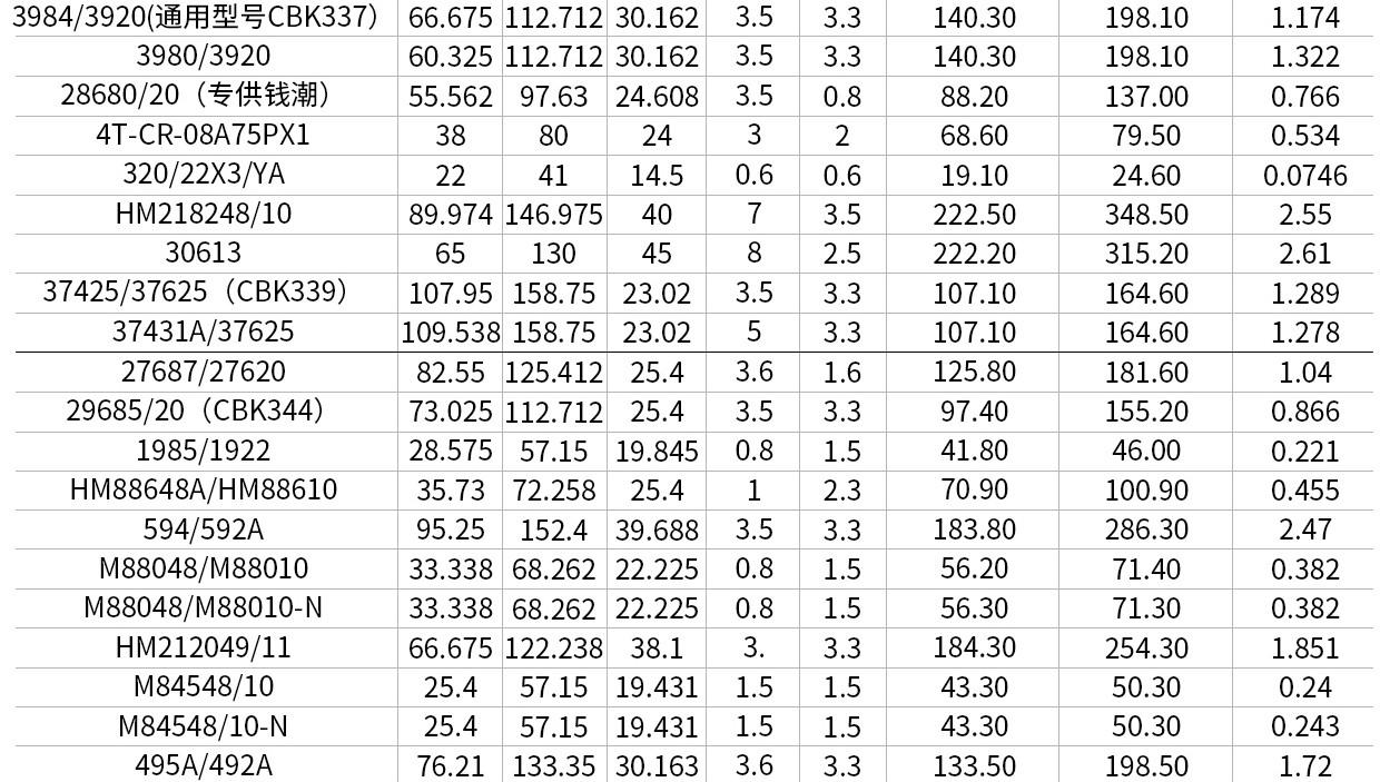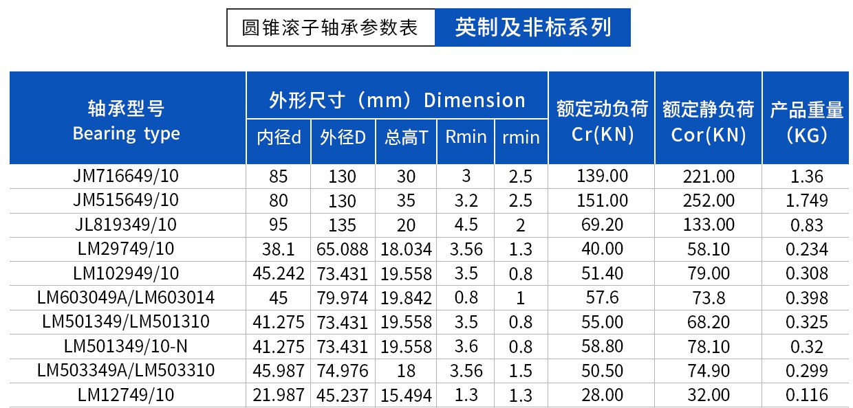 圓錐滾子軸承(英制及非標(biāo)系列)
